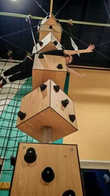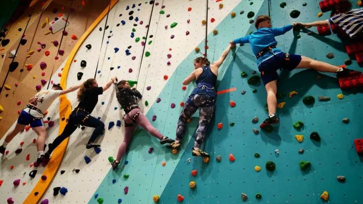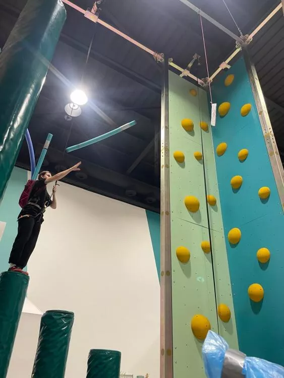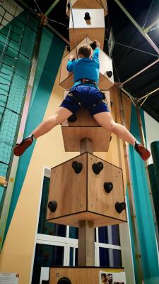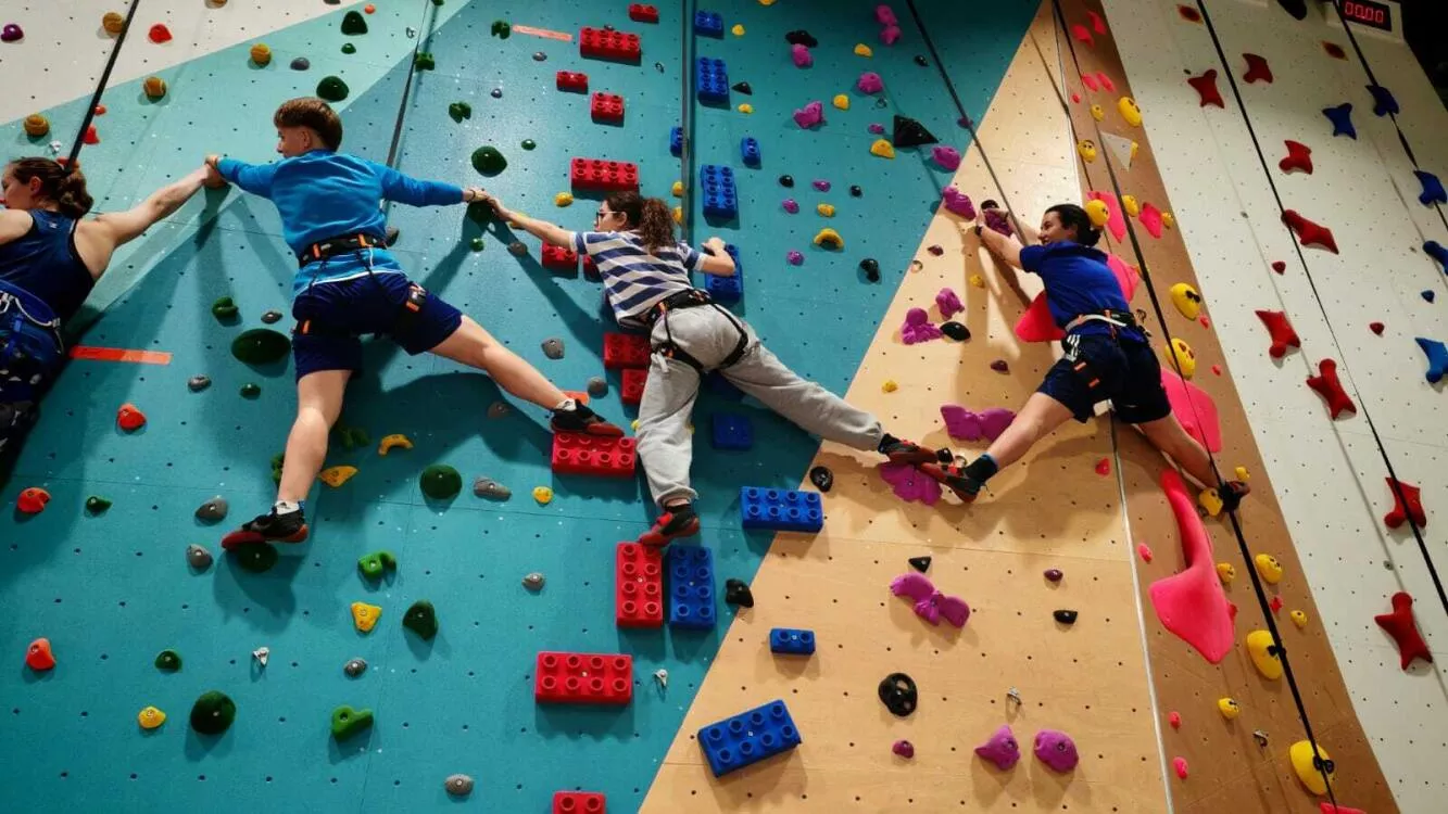 Nous avions prévu des tas de défis à deux ou à plusieurs dans des équipes composées au hasard, et tout le monde a joué le jeu à fond. Les participants expérimentés ont su tirer parti de la découverte du Jeu du Killer pour les autres en leur soutirant de nombreux points. Des grimpeurs sont sortis de leur zone de confort et en ont été gratifiés par de jolies photos souvenirs, tandis que d’autres ont excellé en Tir de Frites sur Cupidon Volant. Après plusieurs heures de grimpe et de rires, nous leur avons proposé un déménagement de pois-chiche en haute altitude, le premier record a été établi. Nous avons terminé la soirée avec les quelques grimpeurs encore capables de soulever une fourchette à la crêperie bretonne d’en face, autour de bolées de cidre et de galettes.