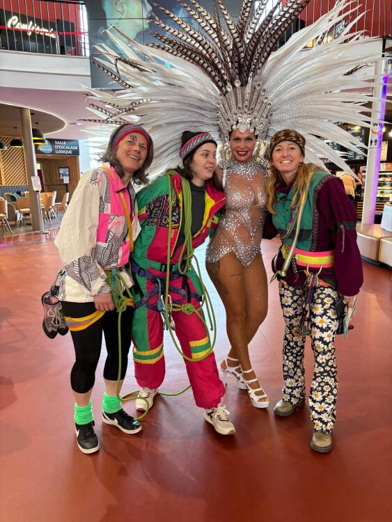 De notre côté, l’équipe des Chats Perchés a aussi joué le jeu en mode “Grimper Old School” : tenues fluos, vieilles combinaisons et bonne humeur au rendez-vous pour partager ce moment avec tous les participants.