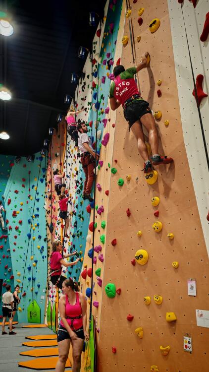 Une heure plus tard, la fatigue se faisait sentir : les avant-bras brûlaient, les pauses s’allongeaient entre deux voies, et les bouteilles d’eau se vidaient vite. Puis, le « feu » des 15 dernières minutes a marqué le début d’un nouveau moment de grimpe frénétique : les points comptaient double !